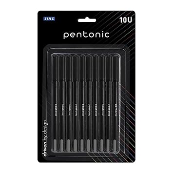 Pentonic 0.7 mm Ball Pen Blister Pack | Black Body | Black Ink | Set of 10 Pens